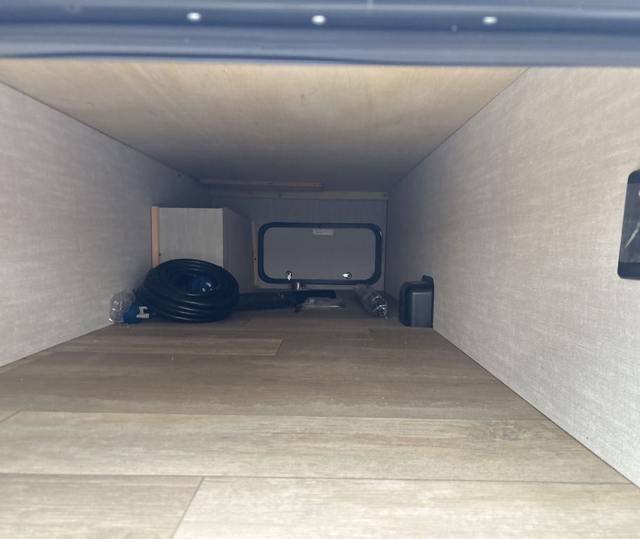 Le modèle 2025 Viking 242MK est une roulotte de 26.10 pieds de longueur et 8 pieds de largeur, avec un poids de 4 724 livres. Conçue pour accueillir confortablement 4 personnes, elle offre un lit queen-size ainsi qu’un canapé-lit. Cette roulotte est équipée d’un climatiseur à conduit central et d’un ventilateur au plafond pour assurer une bonne circulation de l’air. Elle dispose d’un convertisseur de courant continu, d’un chauffe-eau à allumage direct, ainsi que d’un cric électrique pour faciliter les manœuvres. Pour plus de confort, elle comprend une douche extérieure, une toilette, un micro-onde, une hotte et un réfrigérateur double d’une capacité de 8 pieds cubes. Un détecteur LPG/CO2 garantit la sécurité, tandis qu’une roue de secours et un vérin stabilisateur assurent la stabilité et la mobilité. La roulotte est dotée d’une prise câble, d’une prise électrique, d’une antenne pour téléviseur, d’un téléviseur intégré ainsi que d’un auvent électrique. Le toit est équipé d’un panneau solaire de 200 watts pour plus d’autonomie énergétique. L’extérieur en aluminium est de couleur vert et blanc, avec un revêtement de sol en linoléum blanc à l’intérieur. Sa capacité en réservoir d’eau fraîche est de 90 gallons et celle des eaux usées de 64 gallons. Cette roulotte allie fonctionnalité, confort et technologie pour une expérience de voyage agréable et sécuritaire.